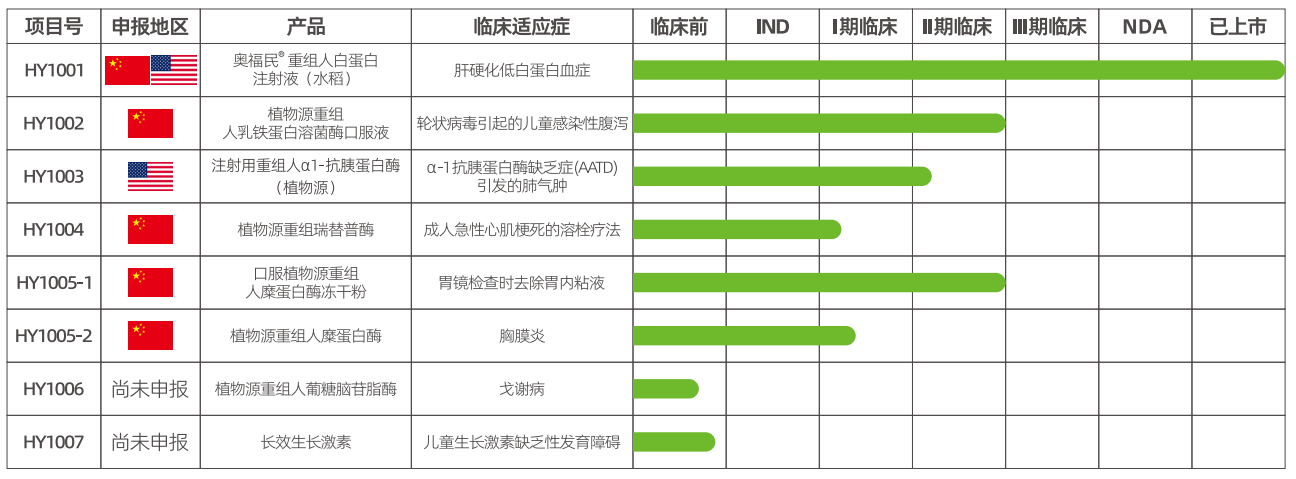 目前,乐天使已成功地研发了以奥福民®重组人白蛋白注射液(水稻)(Recombinant Human Albumin Injection from Oryza Sativa)为代表的系列植物源医药产品,奥福民®已于2025年获批上市。此外,还有一些PMP产品已经陆续进入临床试验阶段。