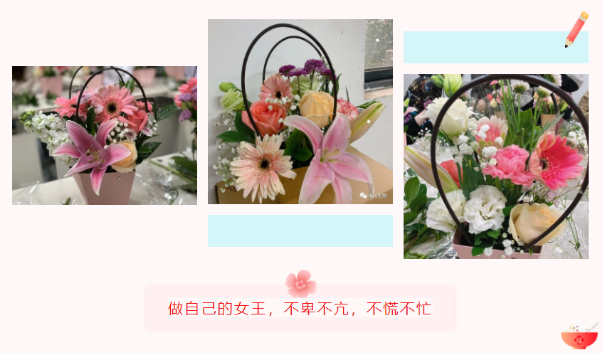 大家兴致盎然,纷纷跃跃欲试。在一片芬芳的花海中,插花艺术创作拉开帷幕。剪接、插枝,大家忙得不亦乐乎……每个人沉静在自我创作、自我欣赏之中。一枝花、一棵草……在女神们的巧手下变的诗情画意,有高雅格调、有田园情谊、有清新怡人。