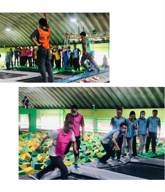 为进一步鼓舞士气,调动广大员工工作积极性与思维创造性,发扬良好的企业文化精神,4月15日下午,乐天使在关南园空气工厂蹦床馆举行了一次蹦床团建活动。60余名员工在轻松而又愉悦的蹦跳中度过了一个难忘的下午。